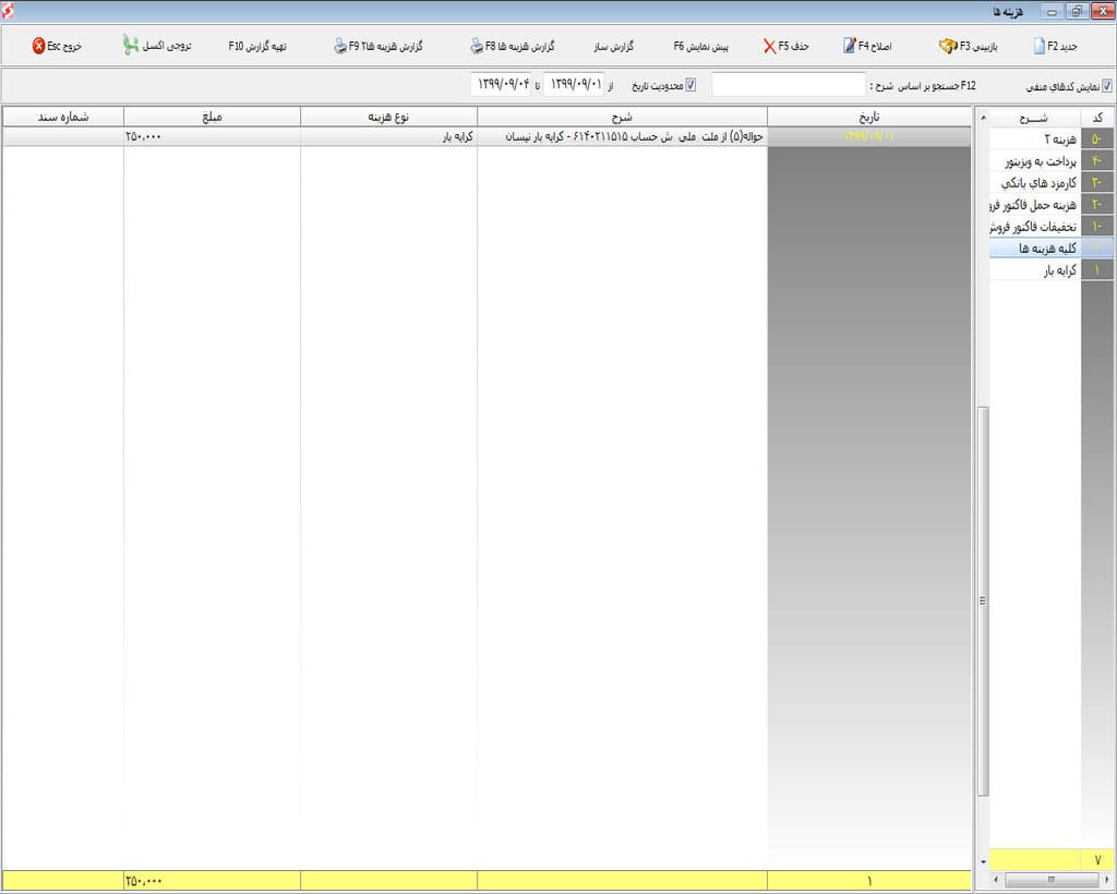- ثبت کارمزدهای بانکی